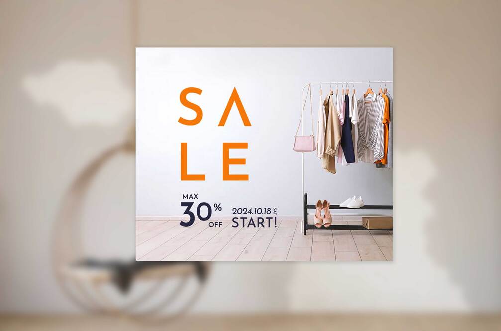 アパレルショップのセールを告知するバナーです。フォントの配置と余白をよく意識して作成しました。